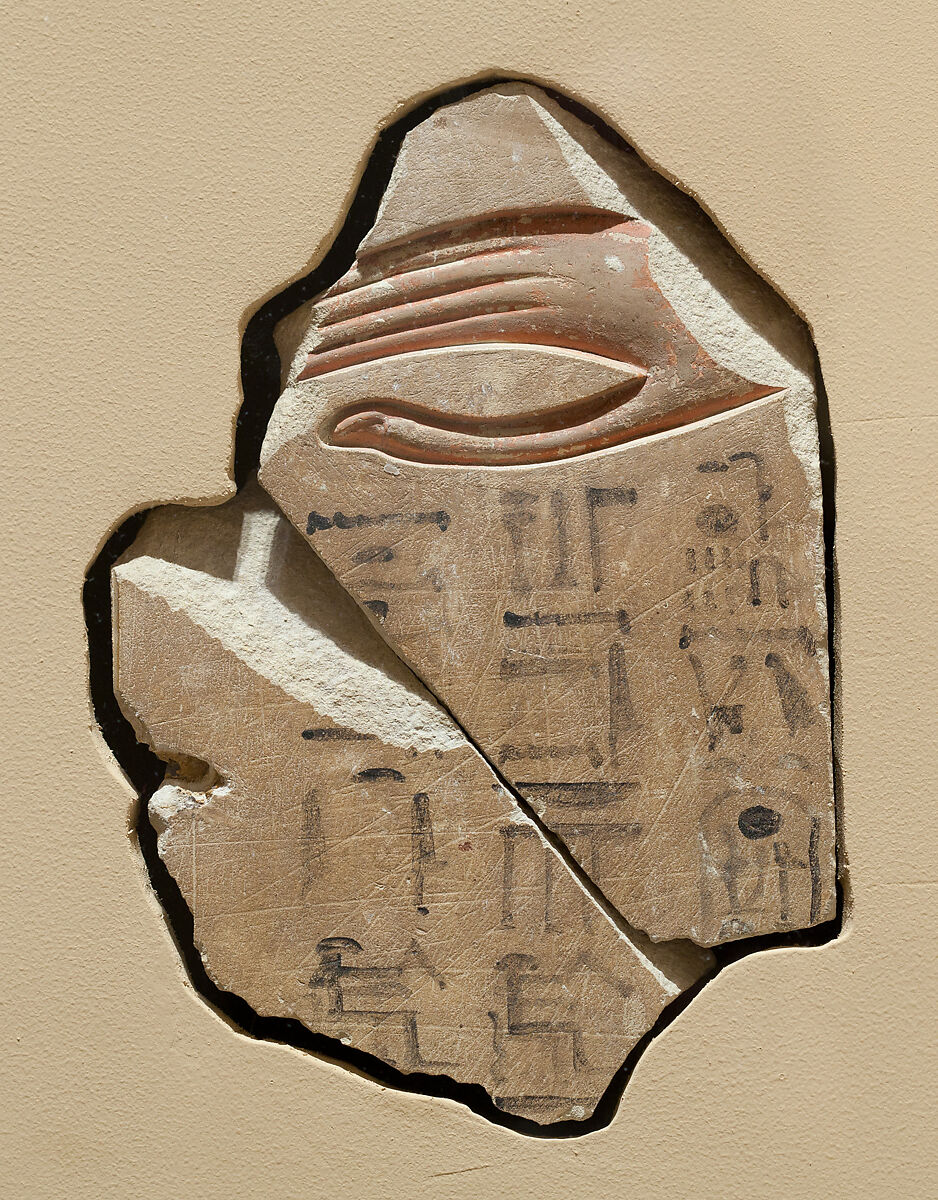 - Title: Relief showing Khety’s hand, with a graffito of Ramesside date