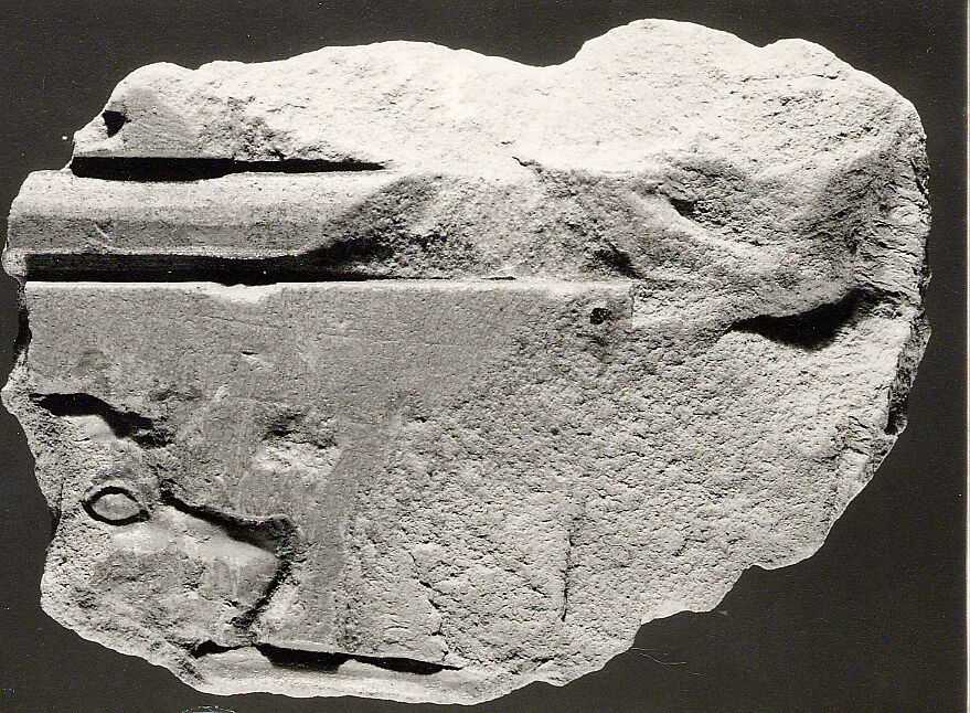 Part of a very fragmentary scene of men with monkeys and baboon (see 26.3.354-4-related), depicted here is the head of baboon. The register line above shows that it would have been placed near the top of the scene.