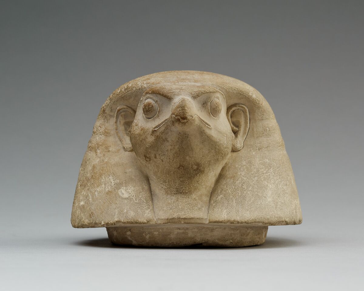 - Title: Canopic jar lid with falcon head (Qebehsenuef)