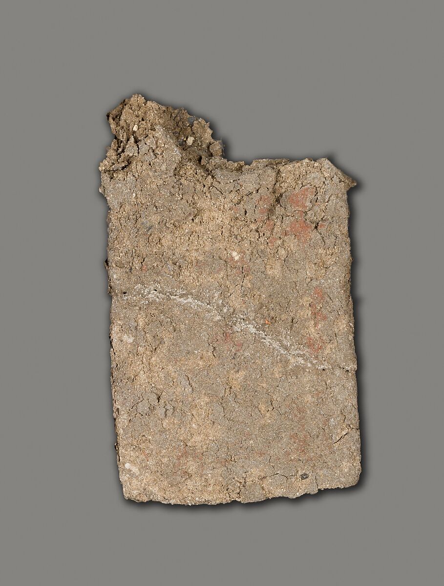 These tablets of unfired clay with attached crude faces were found as a group by the Museum's excavators at Lisht South in loose surface sand west of the mastaba of Senwosretankh, a high official and possibly the architect of the pyramid complex of Senwosret I (ca. 1961–1917 B. C.), east of which he erected his own very elaborate mastaba tomb (see acc. nos. 33.1.2 and other pieces). The mud figures and little coffin (acc. no. 33.1.66) that had contained some of them must have been buried, however, considerably later than the early twelfth dynasty tomb close to which they were found. In fact, during the thirteenth and following dynasties people deposited a number of objects in the by then sacred area around a legendary ruler's pyramid and its dependant monuments, believing conceivably that potent magical powers could thus be released. These flat mud figures, for instance, are inscribed in now much-faded red paint with the names of men identified as enemies (most of them Egyptians but some with foreign names). Their deposition may have been thought to effect their destruction.