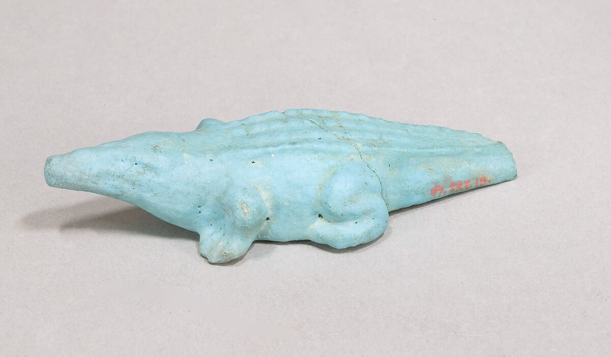 This figure of a crocodile was found in a basket together with the baby's feeding cup 44.4.4.