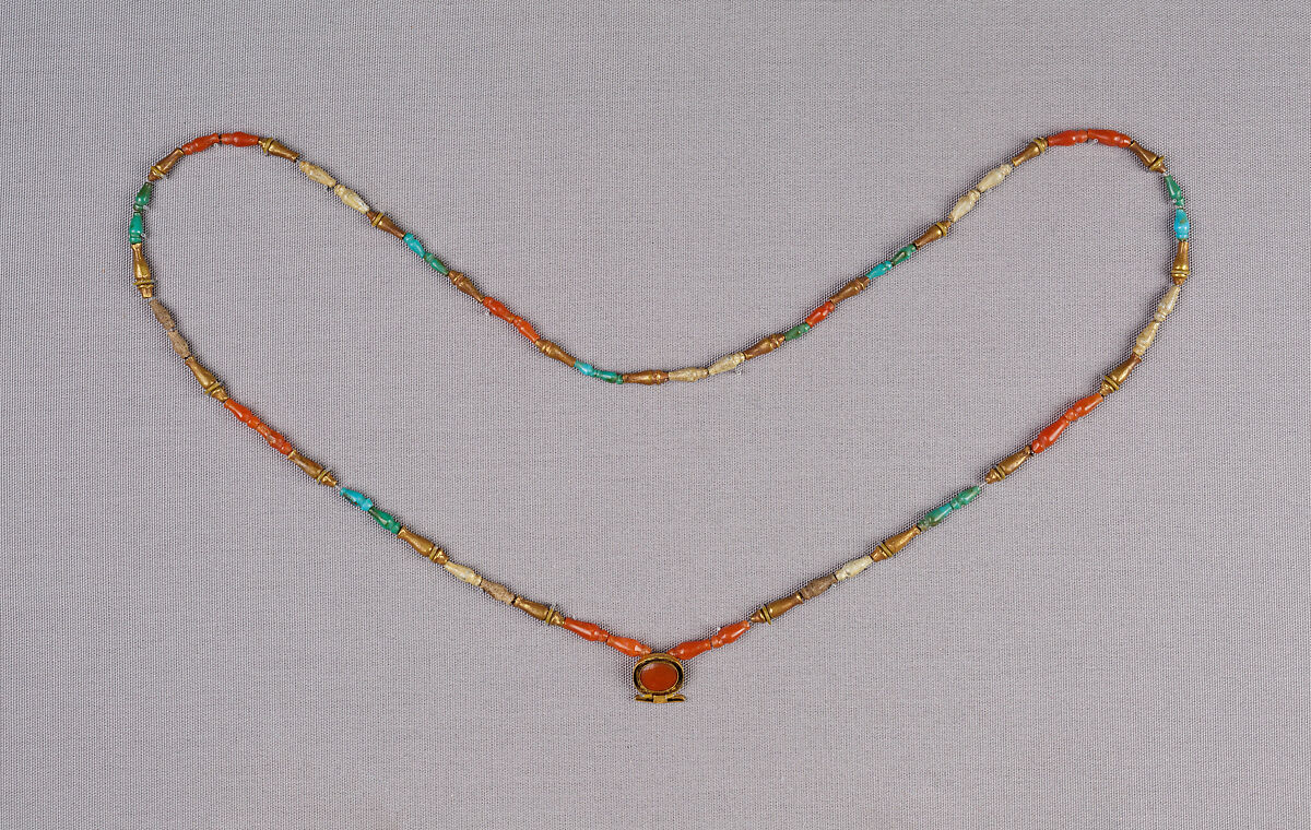 - Dimensions:L. 69 cm (27 3/16 in.); shen amulet: 1.3 × 1.3 × 0.4 cm (1/2 × 1/2 × 3/16 in.); hes vase bead: 1.4 × 0.4 cm (9/16 × 3/16 in.)