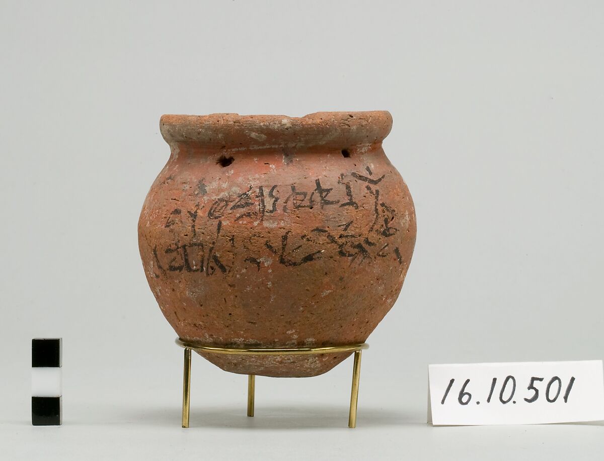 - Medium: Pottery (rough red, originally whitewashed), paint