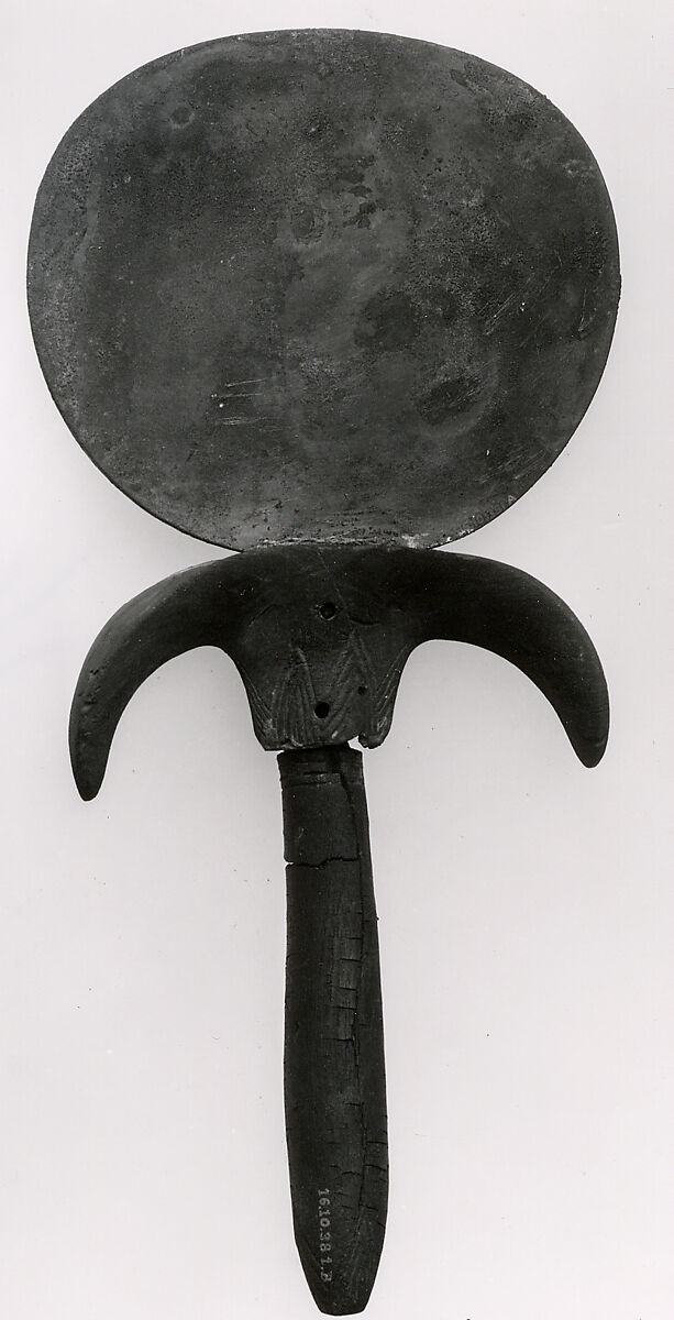 - Medium: Wood (handle); Bronze or copper alloy (mirror)