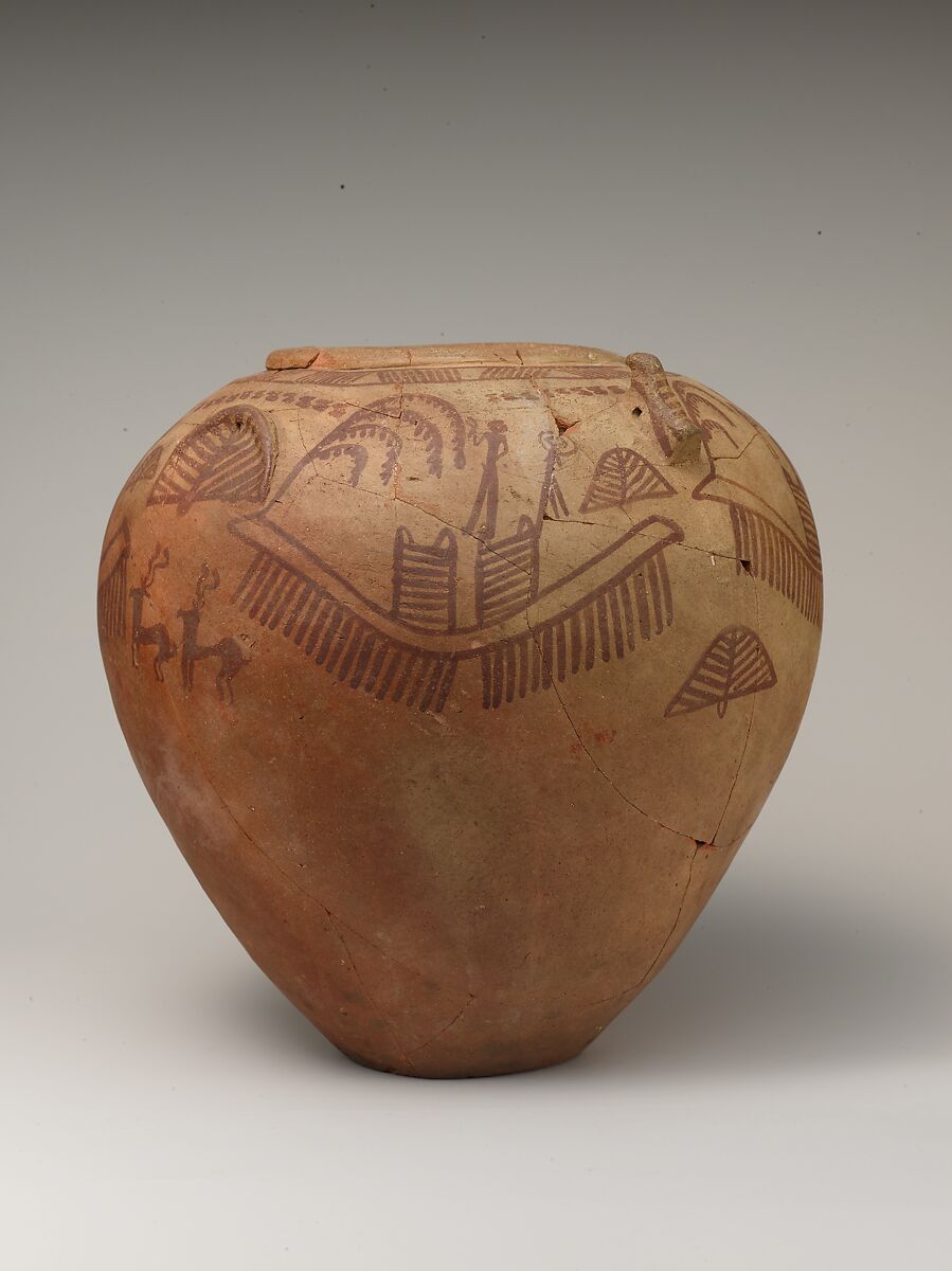 - Title:Decorated ware jar with boats and human figures and falcon-styled lugs