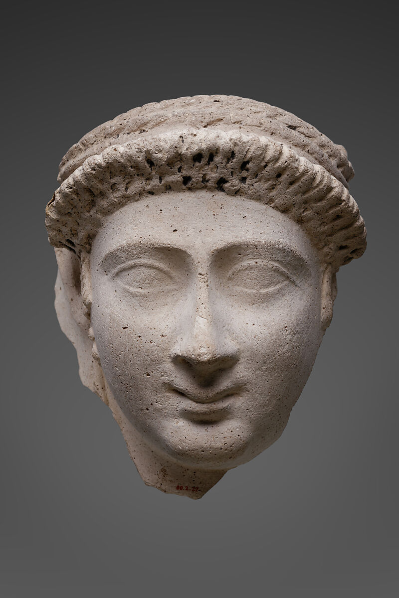 Like the painted mummy portraits, the masks suggest strongly individualized appearances and affect Roman fashions in hairstyle, jewelry, and dress. They follow, however, a somewhat different pattern. For example, female masks may have coiffures that combine Roman arrangements of the upper part of the hair with long corkscrew locks that were considered typically Egyptian.