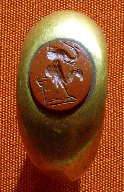 While this gem has no inscription, the unusual figure depicted has a feathered body and bird legs but a strange head. This suggests it might have a relationship to the material described as magical gems.