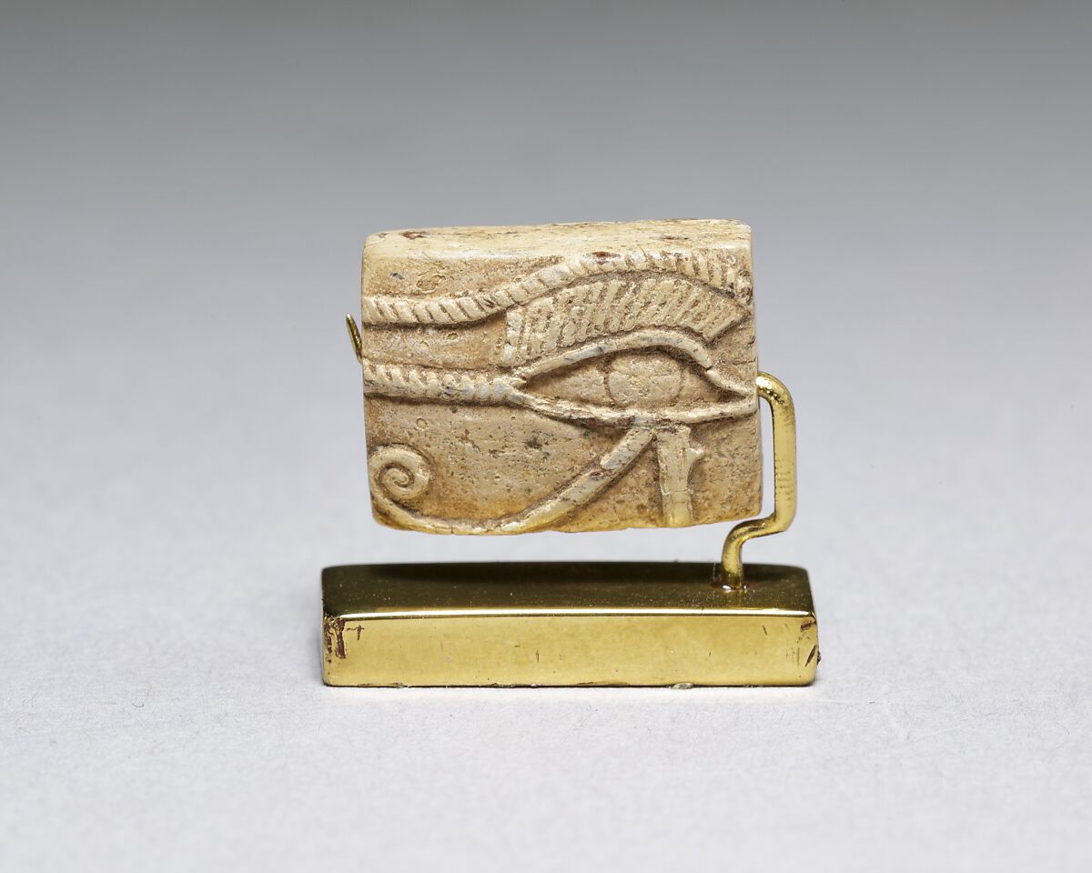 - Title:Wedjat Plaque; on opposite side Maat, Re, Upper and Lower Egyptian serpents over nub sign