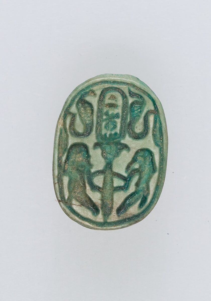 - Title: Scarab with Two Figures Flanking a Papyrus Plant