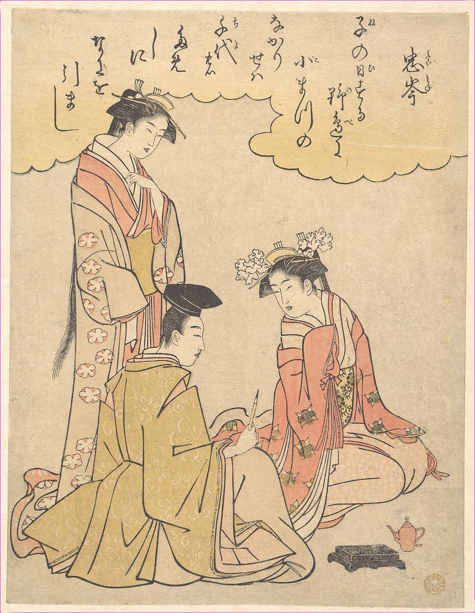 - Title: Courtier and Two Ladies of the Court, with a Poem by Mibu no Tadamine