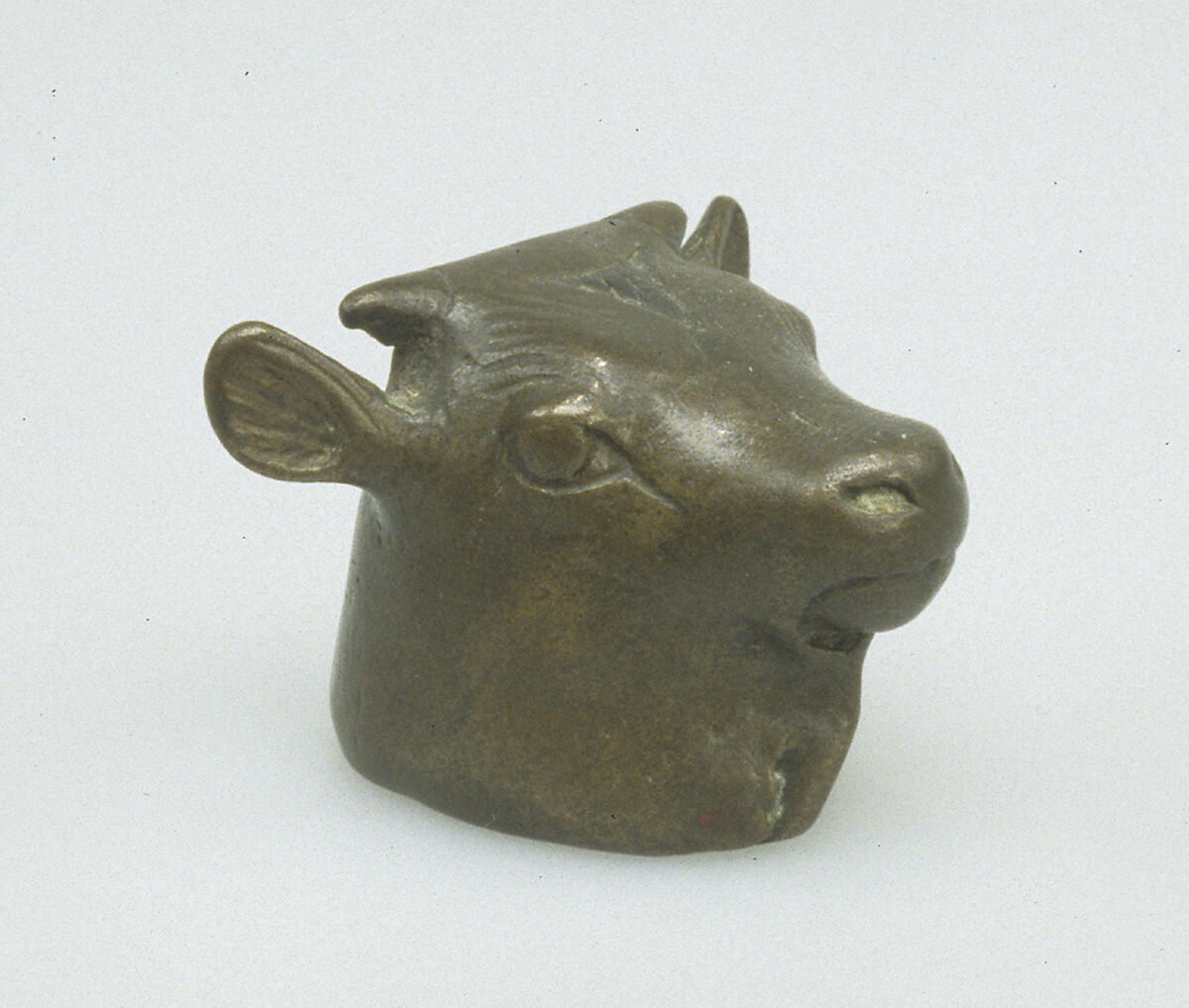 The notation on the back of this bull's head sets its weight at 2 deben, an ancient Egyptian measurement equivalent to approximately 182 grams (0.2 lbs). The bull's head actually weighs 181.41 grams.