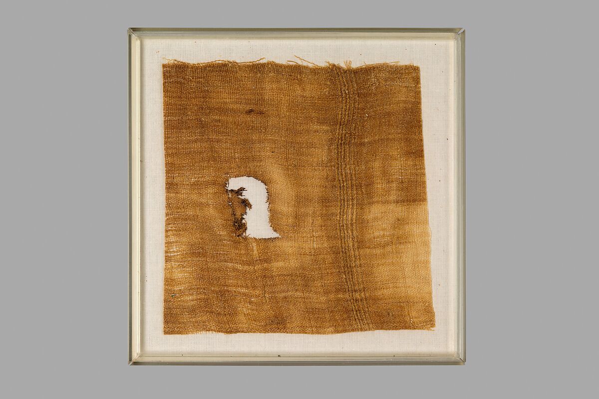 This fragment of linen is from a sheet that was used to wrap the mummy of Ramose, the father of Senenmut (36.3.252). The fringes had been torn off, but an ink inscription with a cartouche enclosing the name of Neferure, Hatshepsut's daughter, was preserved in one corner indicating that the sheet had at one time been used in the household of the princess.