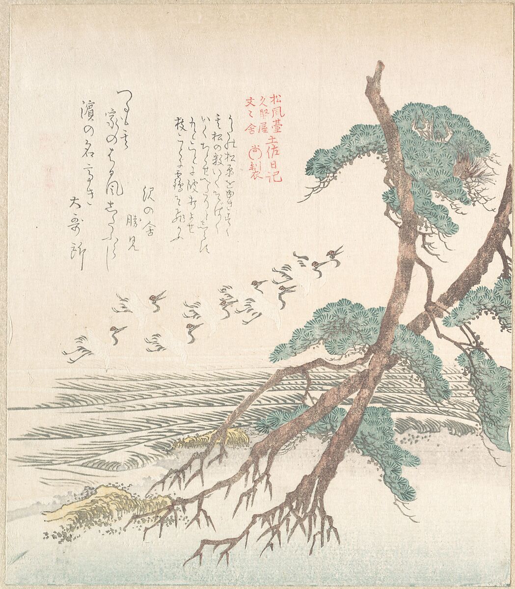 - Title: Sea-Side Landscape with Pine Trees and Flying Cranes