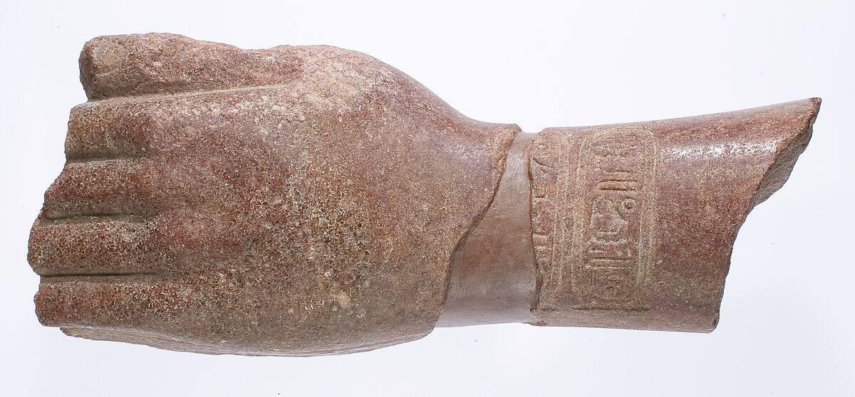 - Title: left hand and arm fragment with Aten cartouches from a statue supporting a stela?