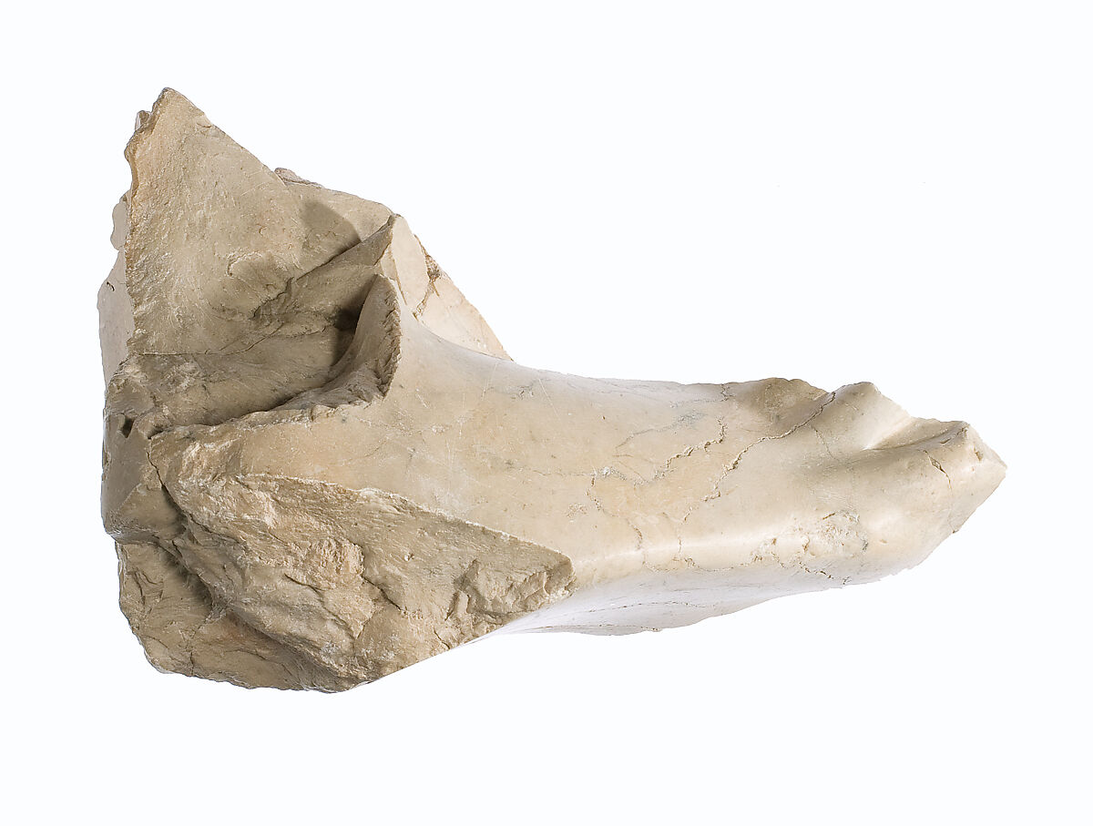 - Dimensions: H. of foot 23 x W across bottom 13.5 x L. of foot and leg preserved 16 cm; negative space runs 14.5 cm of that preserved L.