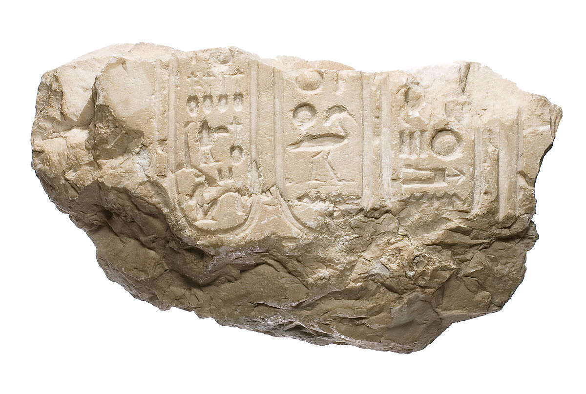 - Title:Inscribed fragment, Akhenaten and Nefertiti cartouches