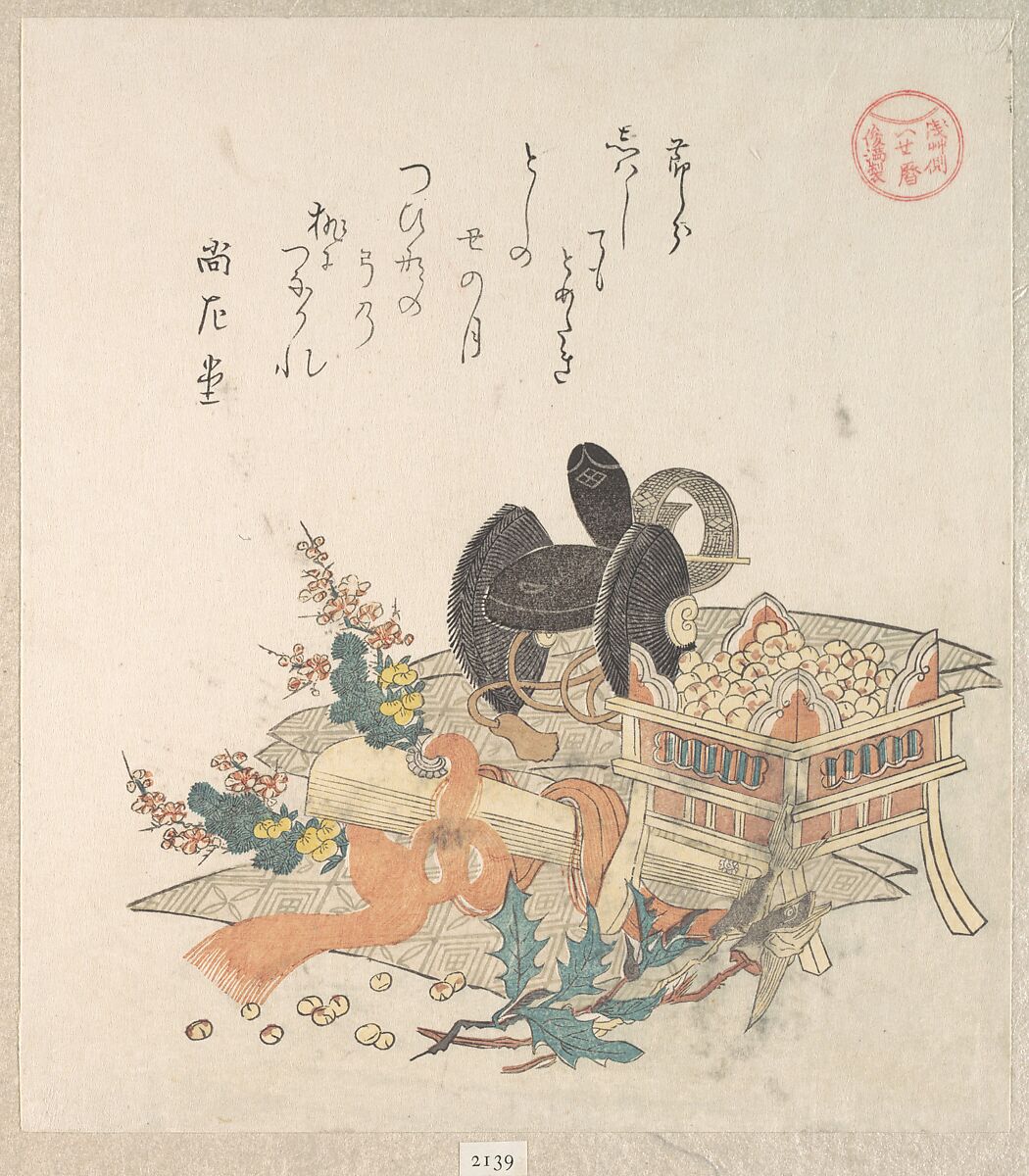 - Title:“Beans for Tossing During Setsubun Exorcism Ceremony,” from the series Ise Calendars for the Asakusa Group (Asakusa-gawa Ise goyomi)From the Spring Rain Collection (Harusame shū), vol. 2