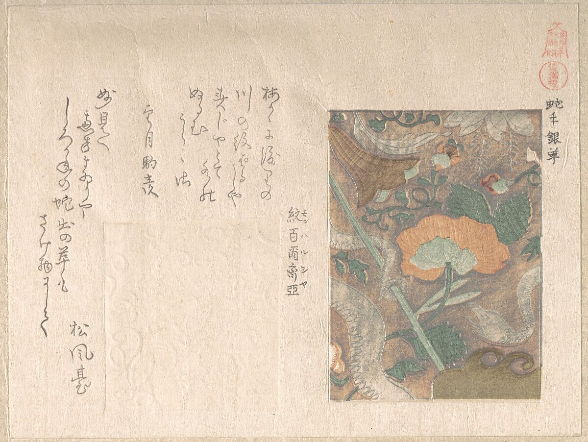 - Medium: Woodblock print (surimono); ink and color on paper