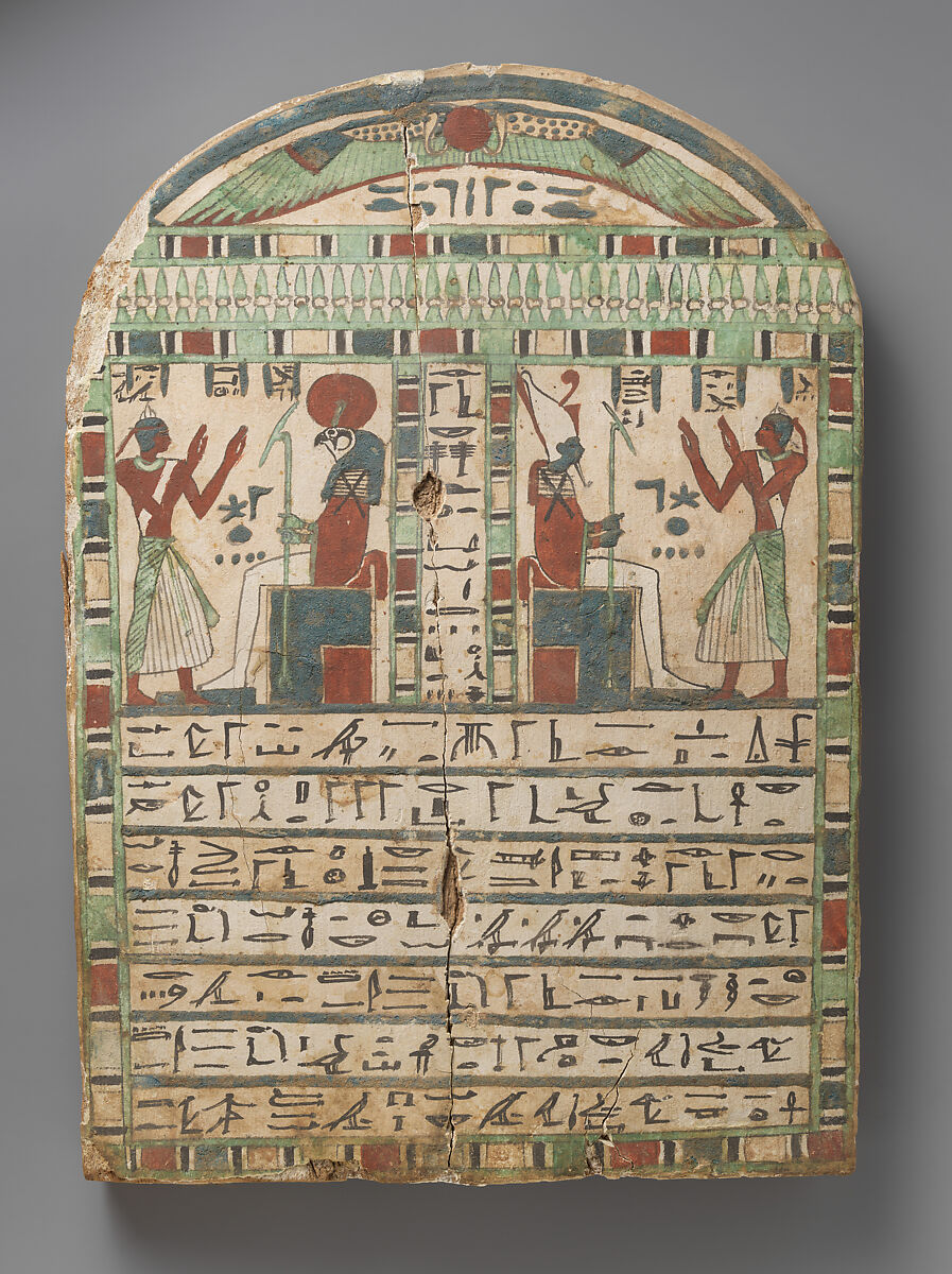 - Title: Stela of the temple servant of Amun Irtihareru adoring Re-Harakhty and Atum