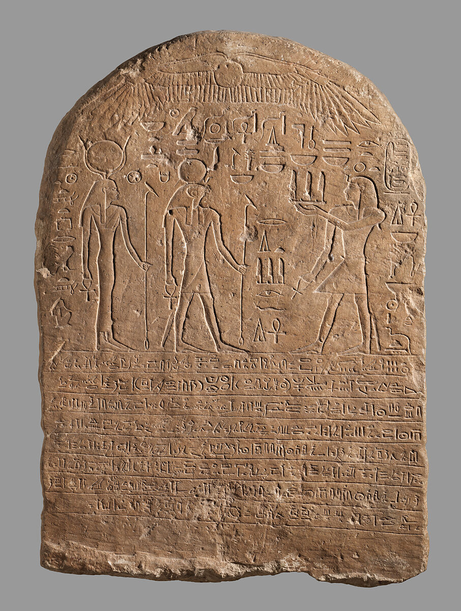 From the Third Intermediate Period through the Saite Period a large number of stelae are preserved that, like this one, record the donation of land to temples. These give an unusually rich view into temple and land organization. Most often non-royal persons actually made the gift, and the gift was probably destined for the support of the donor's funerary cult. The donation was generally made through an intermediary somehow attached to the temple and who must have derived some benefit for his agency. For reasons of decorum, usually the reigning king was depicted as the official donor in the scene at the top. Probably because of the nature of land development, almost all such stelae relate to areas in the north of the country.