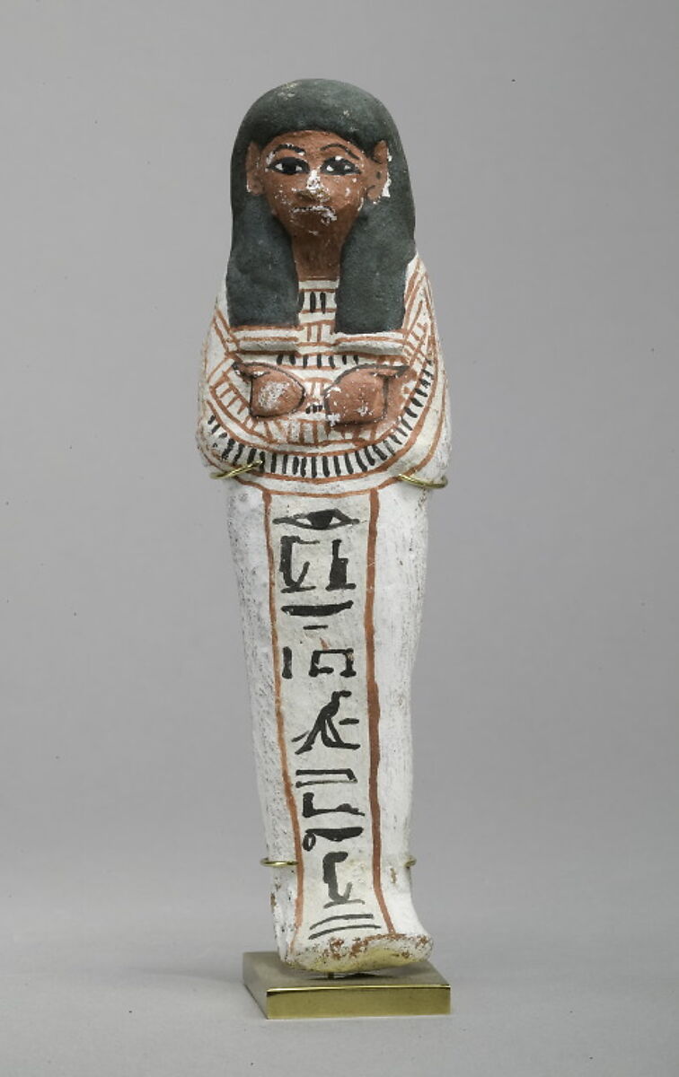 This shabti is inscribed for Tamaket, wife of Khonsu, son of Sennedjem. Other objects in the collection that were discovered in the same tomb can be viewed here.