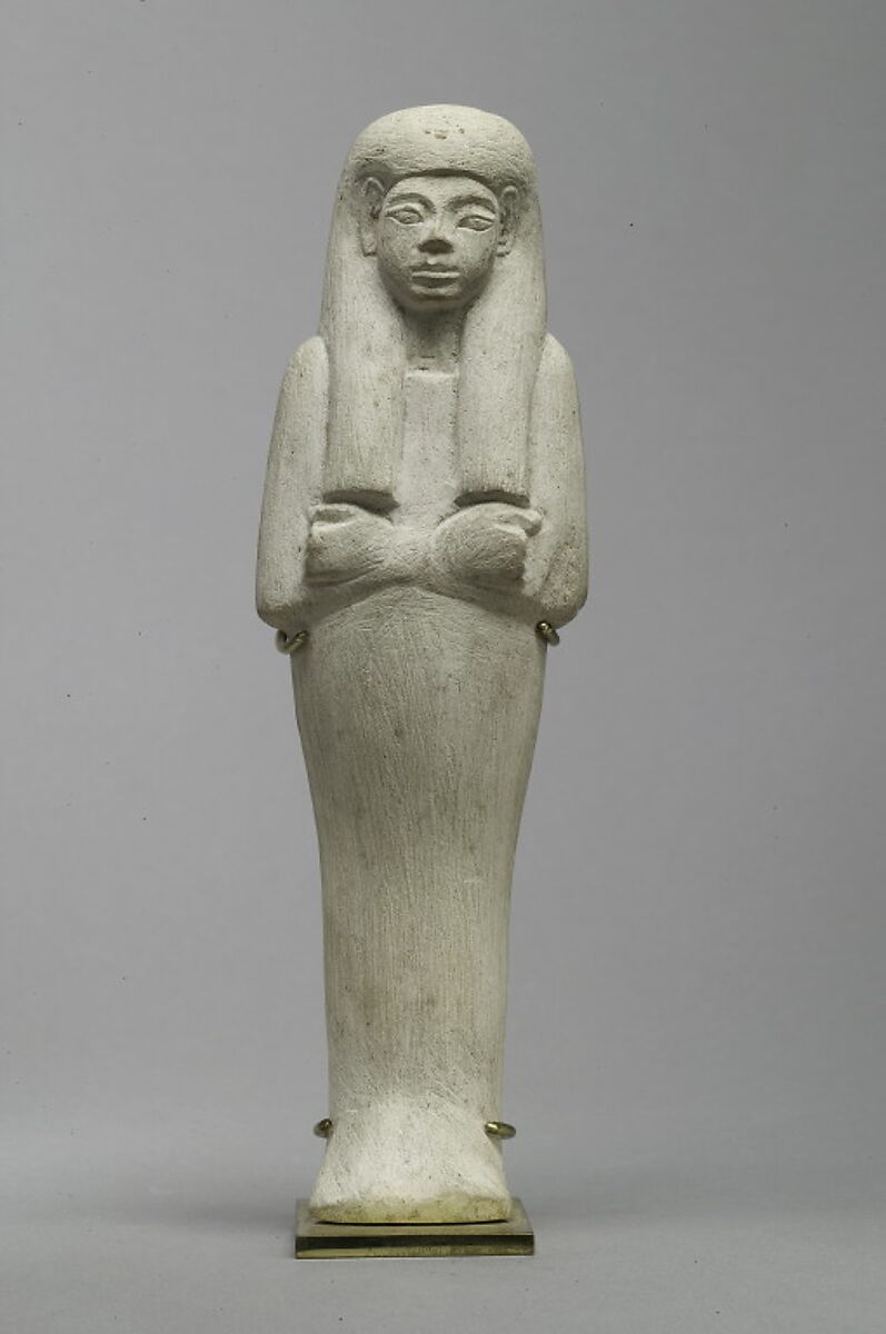 This uninscribed shabti was found in the tomb of Sennedjem. Other objects in the collection that were discovered in the same tomb can be viewed here.