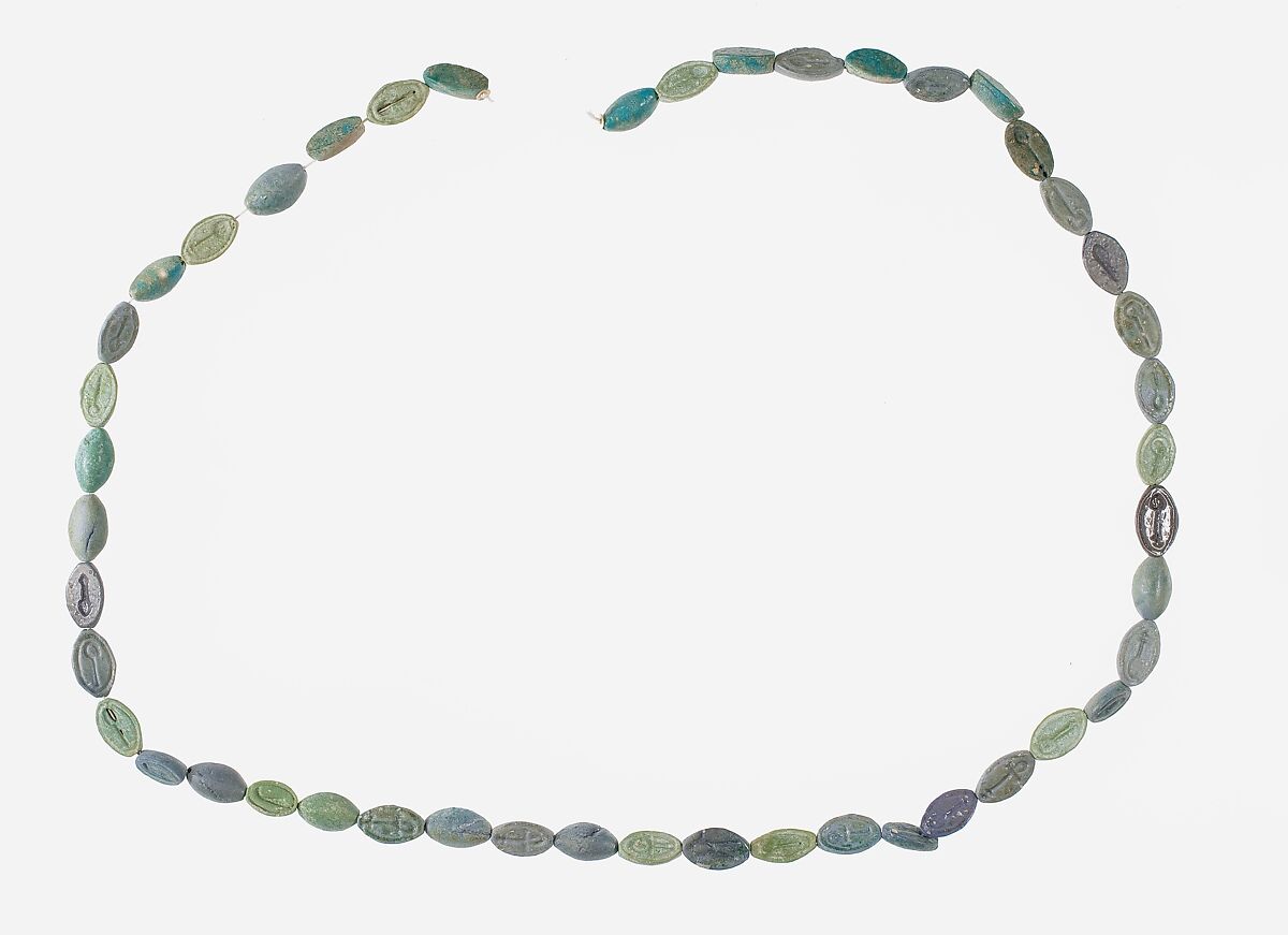 - Title: String of 46 Cowroids Inscribed with Various Hieroglyphs