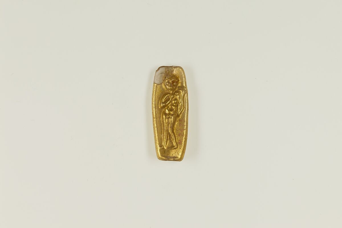 Gold glass beads were a Hellenistic development. They were created by combining drawn tubes of colorless glass with gold foil. The earliest examples were finished bead by bead. These are all modern stringings; most ancient stringing patterns are lost as the string decays.