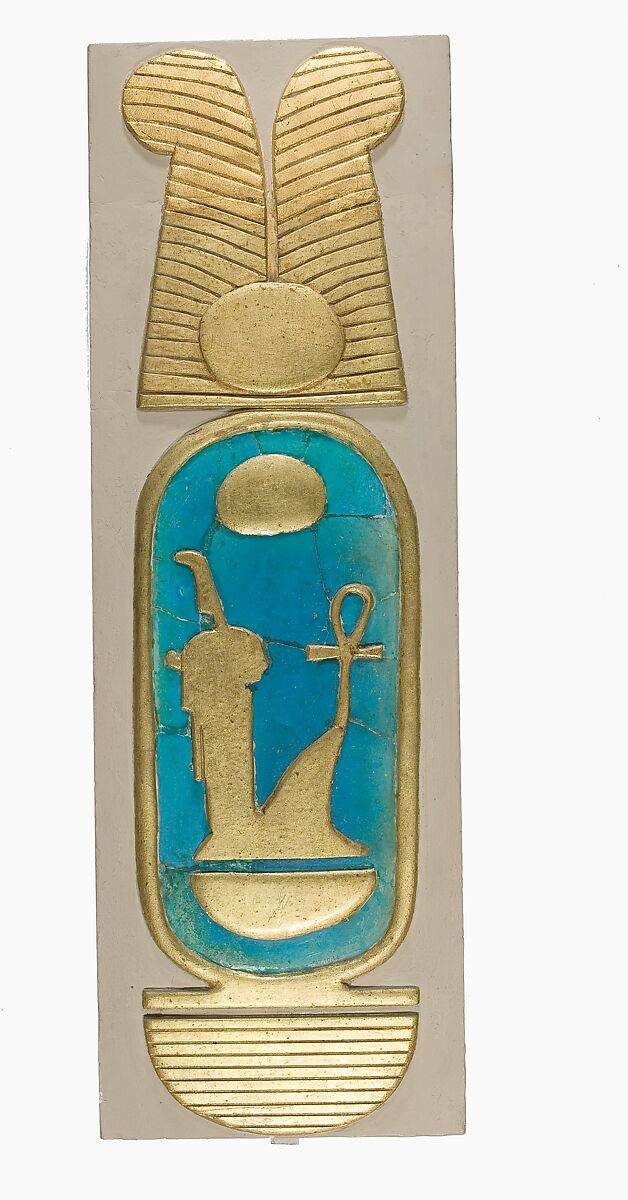 The original cartouche decoration was found in the Temple of Amun, which was built for the king's second heb sed. The excavators also found a long section of cornice decoration, and a group of tiles that had been used to create a geometric pattern, probabaly on a piece of temple furniture made of wood. the cornice and cartouche were also probably decorative elements of temple furniture.