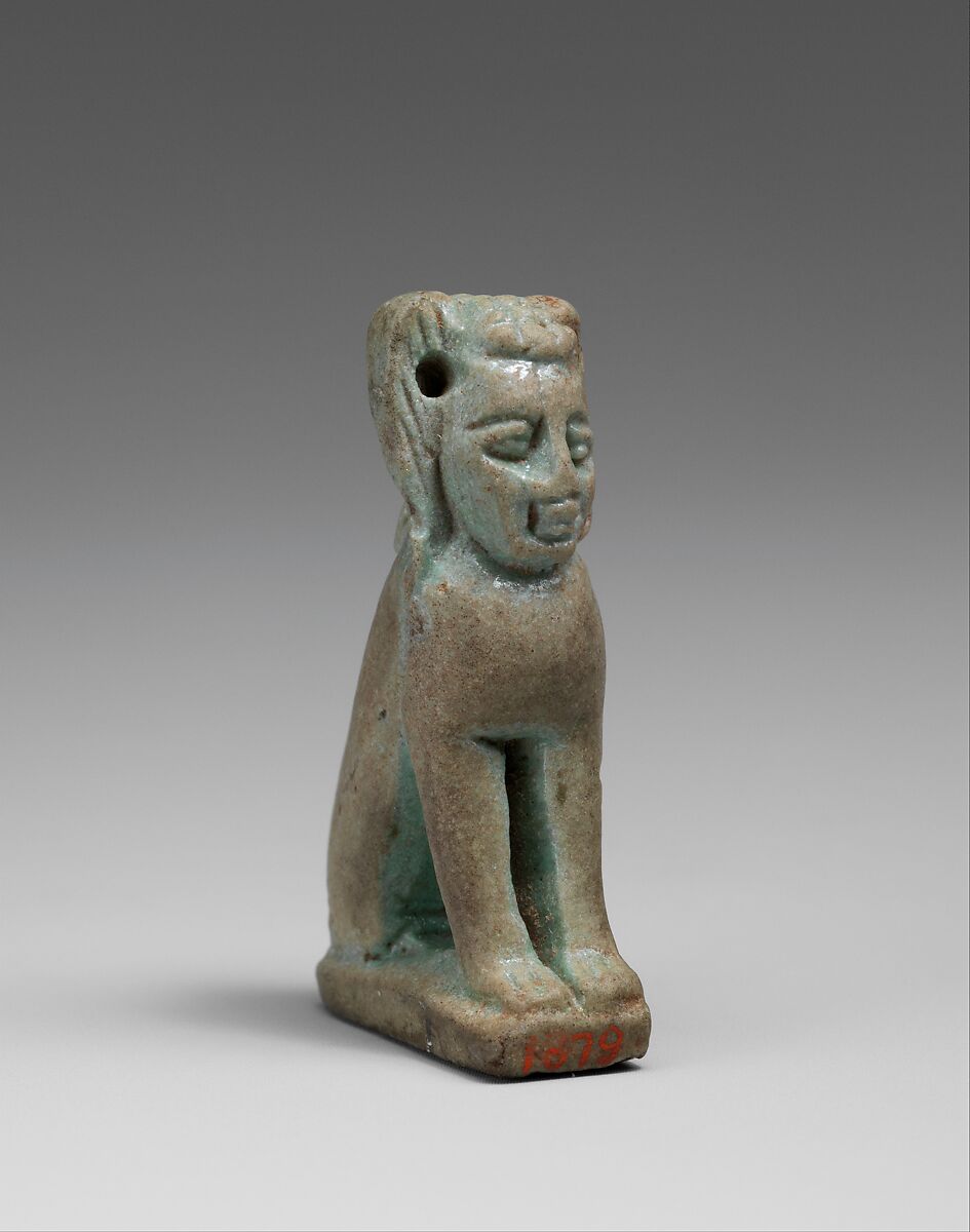 This figure is part of a repertoire of figures created in a distinctive spotted faience from dynasty 22 into dynasty 26. The center of production was the eastern Delta, in particular Bubastis and Tanis; this was an area where Near Eastern peoples had long been interwoven in the population; at this time it was also a center for the settlement of Libyan tribal peoples. Possibly these conditions influenced this particular production.