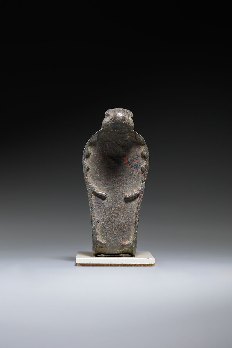 Friezes of rearing cobras are depicted along the tops of architectural features such as shrines, creating a protected space inside. This uraeus, which has a dowel hole underneath, was likely an element in one of these friezes.