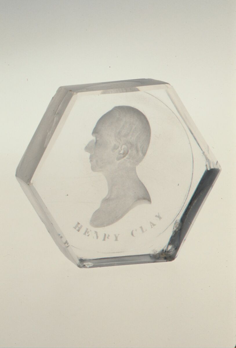 According to "Gleason's Pictorial," a contemporary periodical, the medal from which this intaglio portrait of Henry Clay was taken was designed by C.C. Wright. The paperweight was probably made soon after Clay's death in 1852.