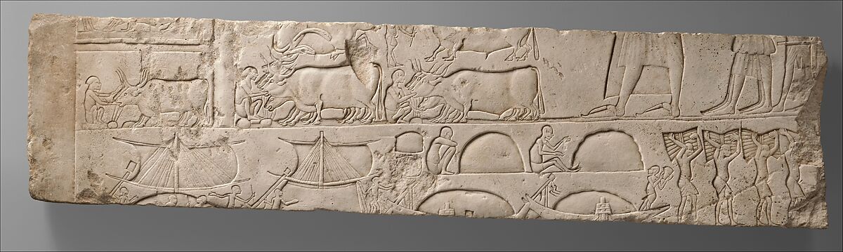 Relief Depicting Meryneith Inspecting His Stables and Ships Unloading Merchandise, from his tomb at Saqqara