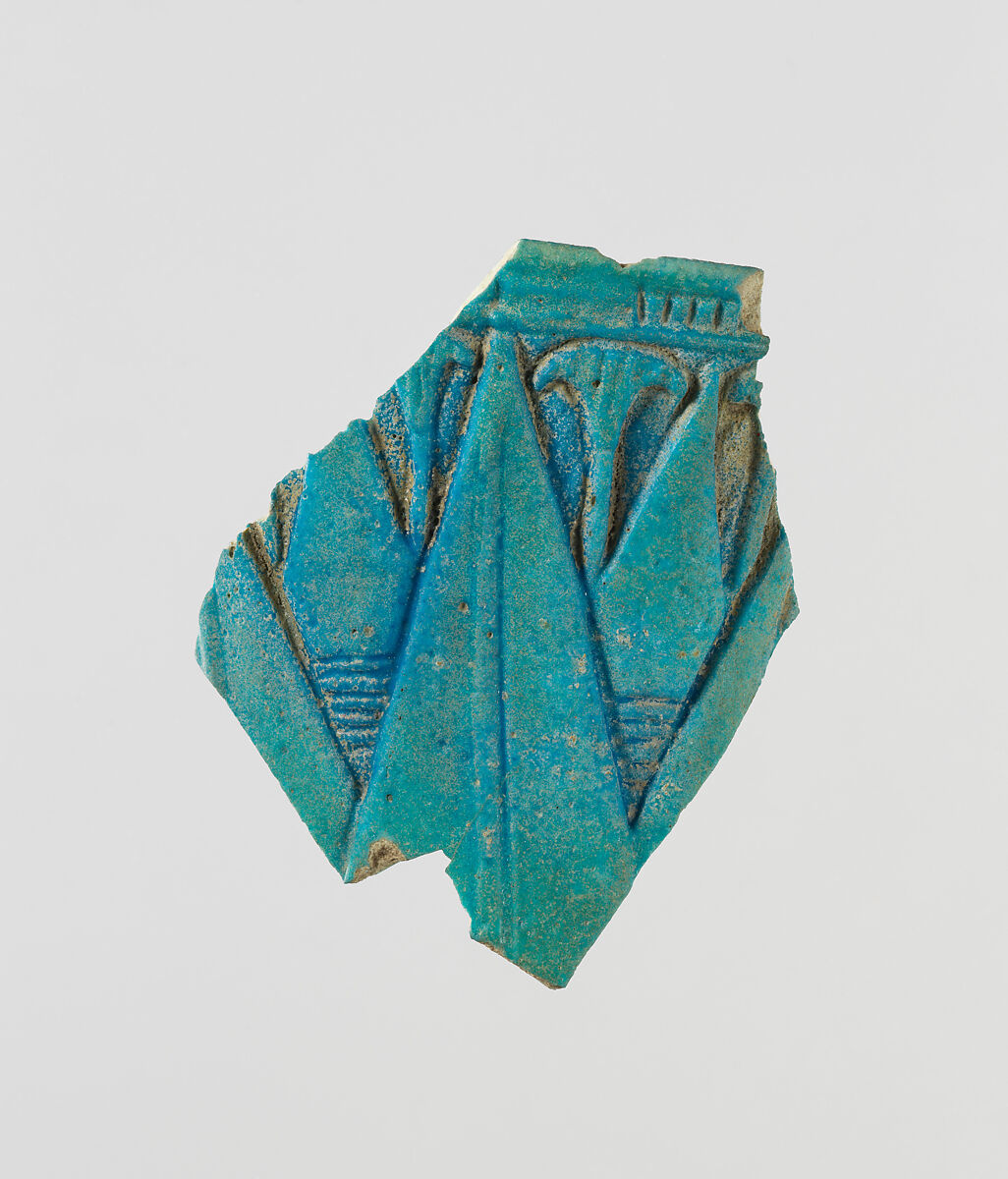This fragment from the rim of a chalice is decorated with the sepals and petals of the blue lily, with papyrus umbels in the interstices. See 26.7.971 for a complete example.
