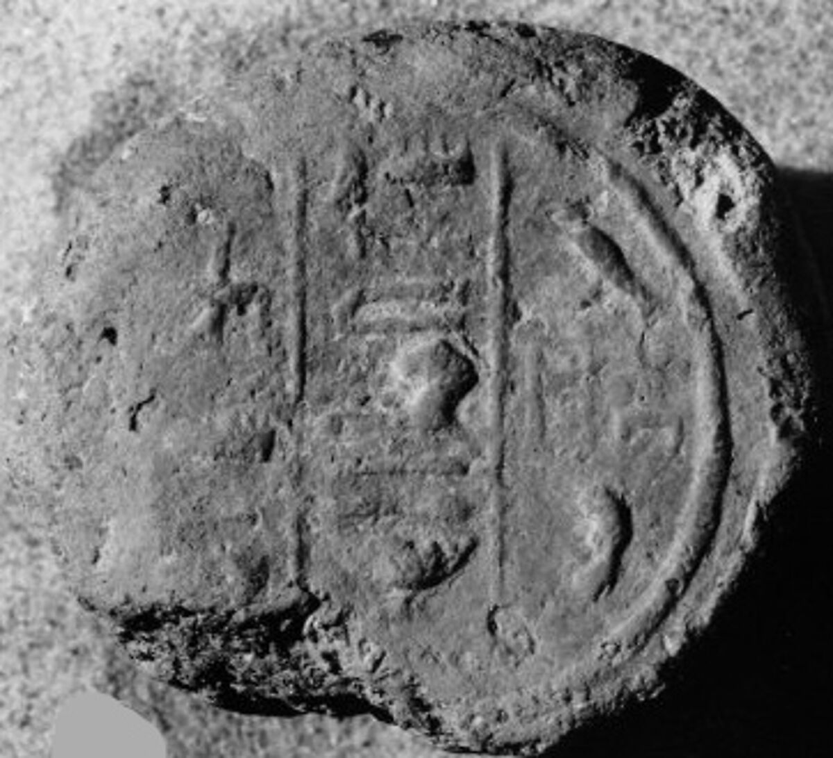 This cone has the impression of a stamp seal inscribed for a goldsmith of Amun-Re named Amenemhat and his wife, the housemistress Tahut. For a drawing of this impression see http://www.funerarycones.com/, number 220.