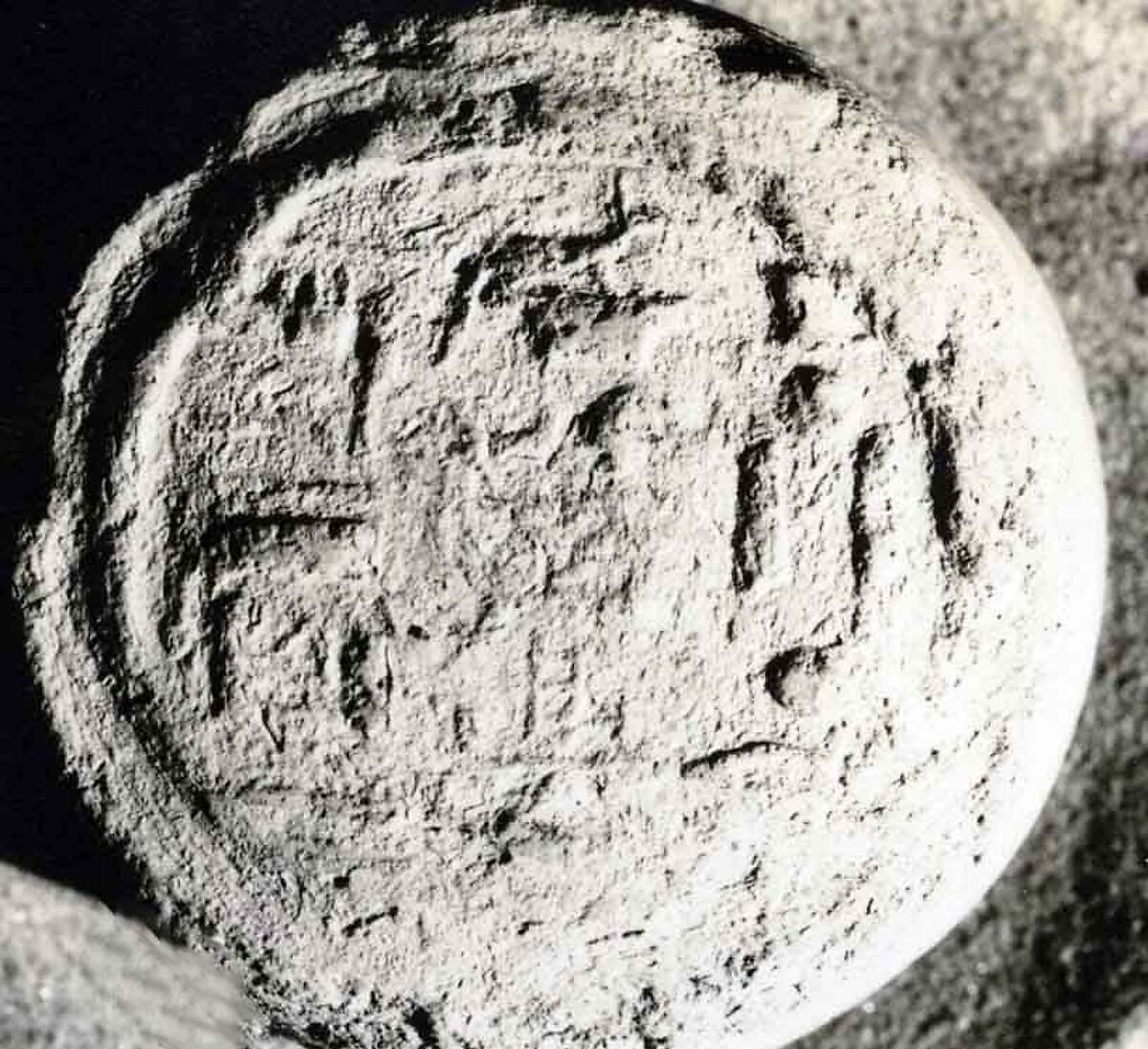 This cone and three others in the collection (15.2.67, .69, .70) have the impression of a seal inscribed for a man named Seshi who was overseer of the ships of the god Amun. Compared to other cones in the collection, these are larger in both diameter and length. They also differ in shape and manufacture. Whereas most funerary cones are solid and roughly conical in shape, these are hollow and become wider towards the middle before they taper to a blunt end. One example, 15.2.70, is preserved for its full length, but the best preserved impression is on cone 15.2.67.