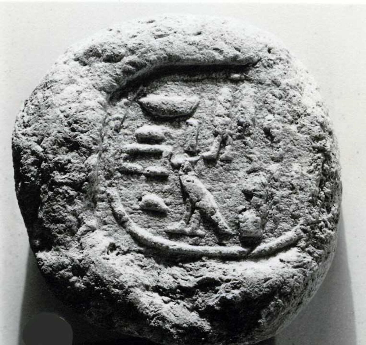 This cone has the impression of a stamp seal inscribed for a house mistress named Taiy. For a drawing of this impression, see The world of funerary cones and stamped bricks, no. 295.