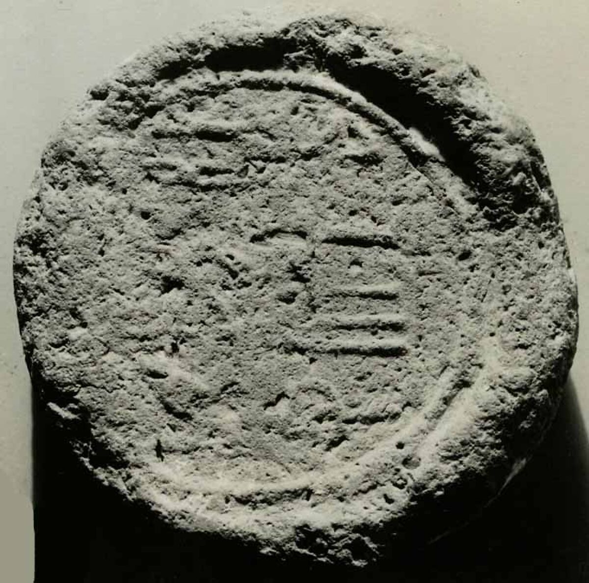 This cone has the impression of a stamp seal inscribed for a chief bowman named Amenemopet who was also overseer of hunters. For a drawing of this impression, see The world of funerary cones and stamped bricks, no. 304.