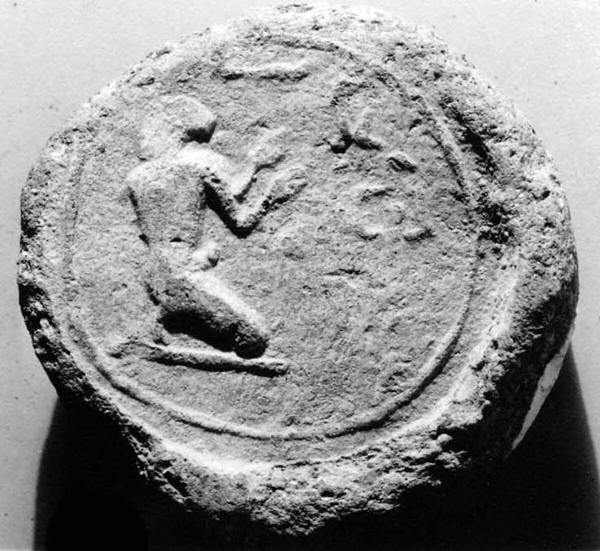 This cone has the impression of a stamp seal inscribed for a man named Mahu who was guardian of the treasury. For a drawing of this impression, see The world of funerary cones and stamped bricks, no. 587.