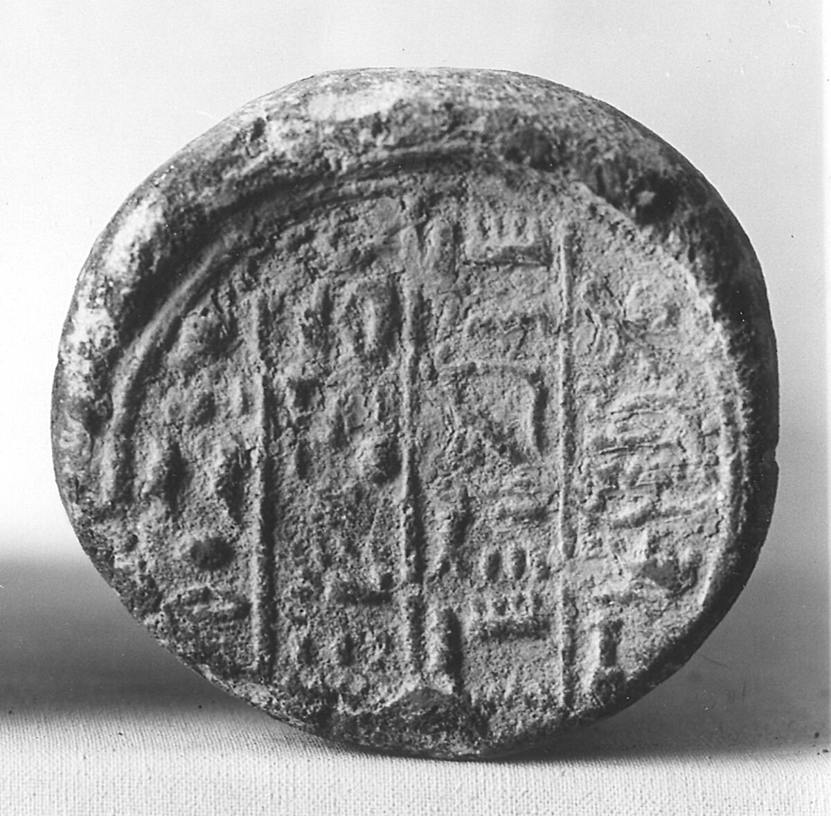 In 1909, the Museum acquired this cone and two others with the same stamp (09.185.12, .17), and in 1915, while excavating an uninscribed tomb near TT 297, Museum archaeologists uncovered five more (15.10.2–.4, .22, .23). The best preserved impression are on cones 15.10.2 and 15.10.23. (CHR)