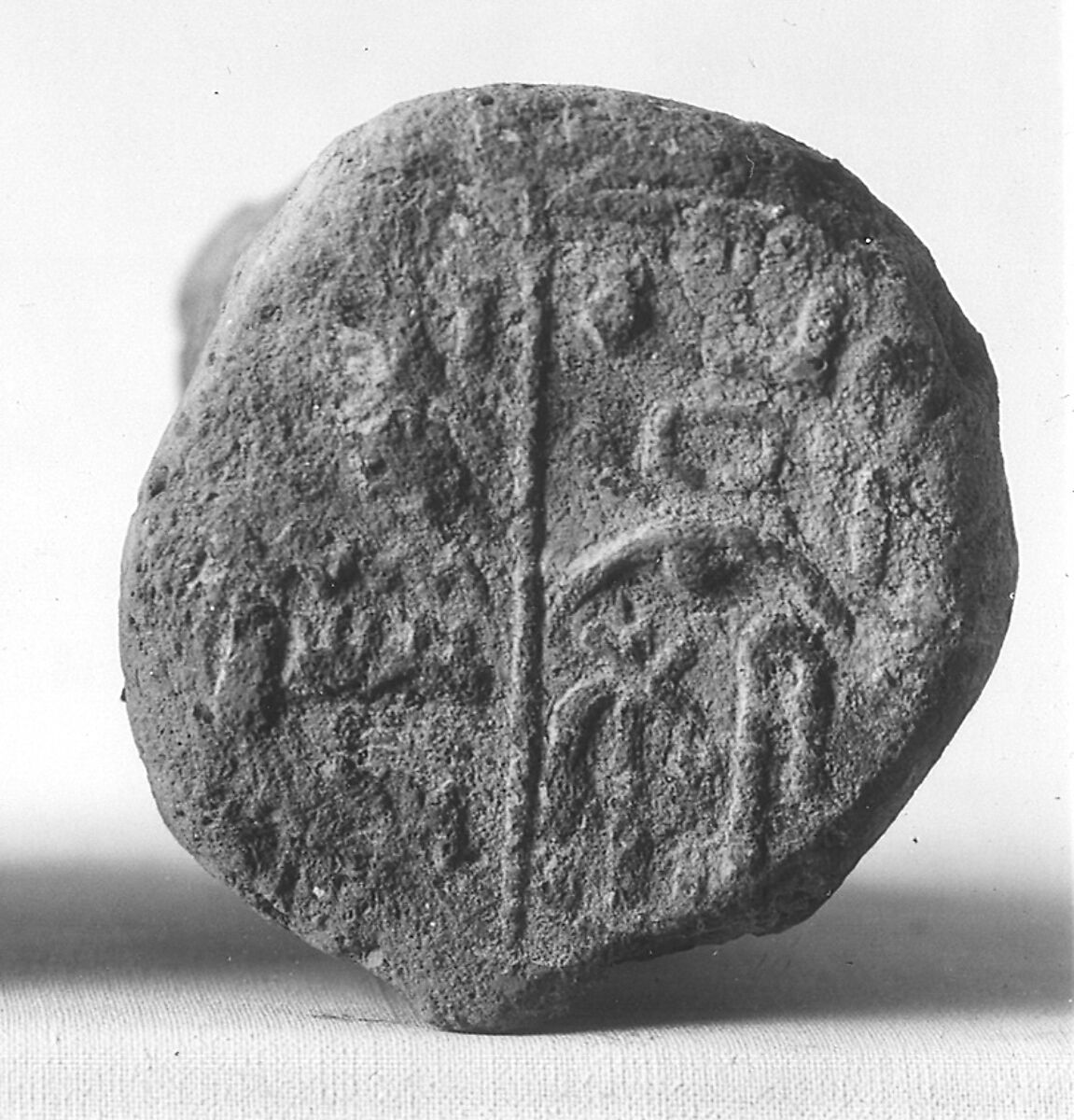 This cone has the impression of a stamp seal inscribed for a man named Ahmose who was high priest of Amun in the mortuary temple of Thutmose III and owned Theban tomb 121. For other examples of this type of cone see 15.10.9; 30.6.126; 31.3.169. For a drawing of this impression, see The world of funerary cones and stamped bricks, no. 297. Ahmose also had a second second type of stamped cone - see 15.10.8, 35.3.331, and 35.3.332 (see The world of funerary cones and stamped bricks, no. 300).