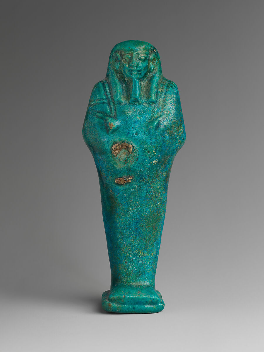 This small funerary figure (shabti) comes from the tomb of a wealthy family. The patriarch, the Priest ("God's Father") Djedhor, was buried with his wife Nebtaihet and two other individuals in one chamber, with their three sons in the second..