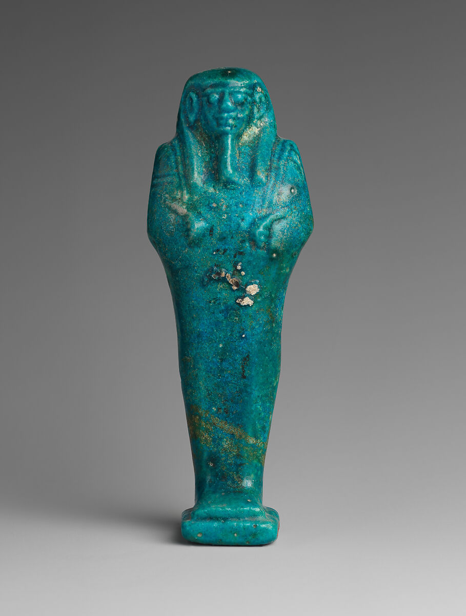 This small funerary figure (shabti) comes from the tomb of a wealthy family. The patriarch, the Priest ("God's Father") Djedhor, was buried with his wife Nebtaihet and two other individuals in one chamber, with their three sons in the second..