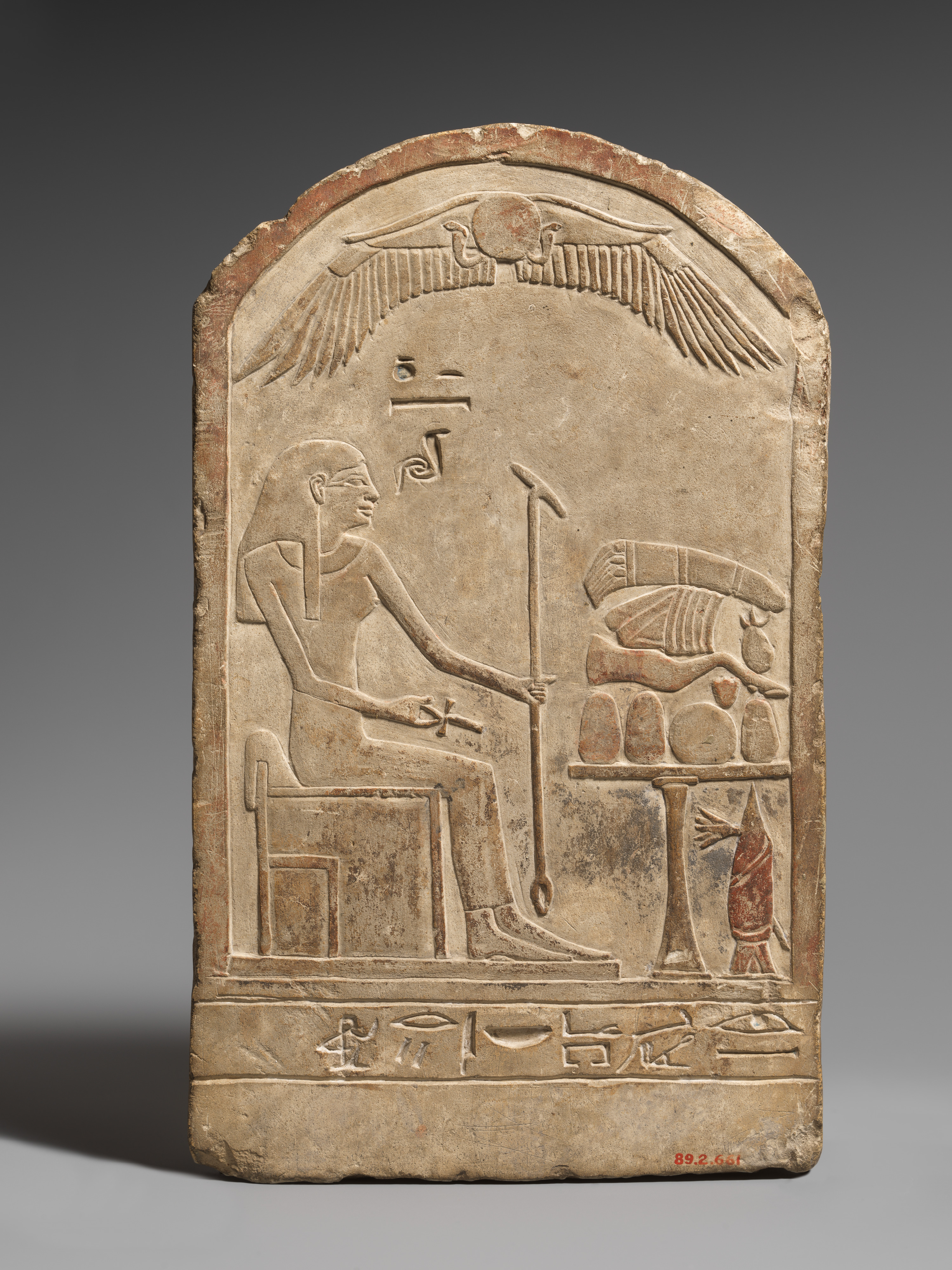 Title: Stela dedicated by Nebiry depicting Nut before an offering table