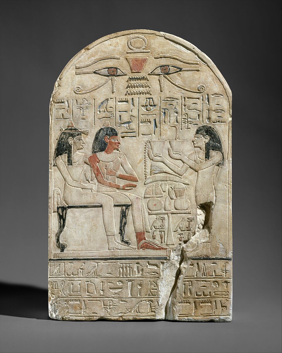 This stela depicts the Lector-priest Siamun and his mother, the singer Amenhotep, receiving offerings from "his sister" (probably his wife), the chantress Iretnofret.