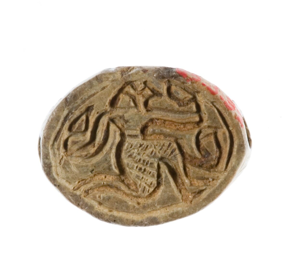 - Title: Canaanite Cowroid Seal Amulet with Falcon Headed Deity
