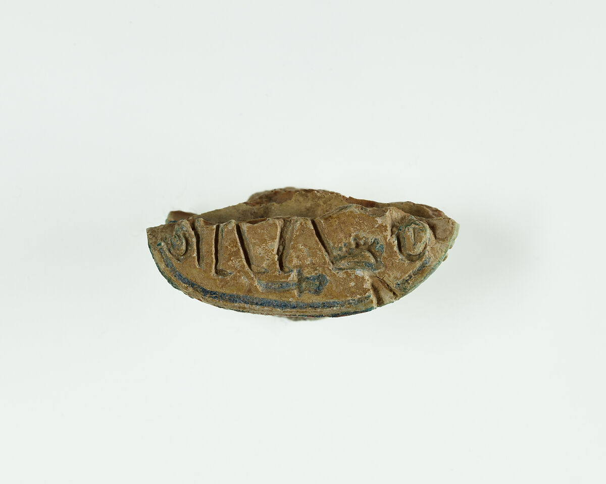 - Title:Fragment of a Scarab Inscribed with Hieroglyphs