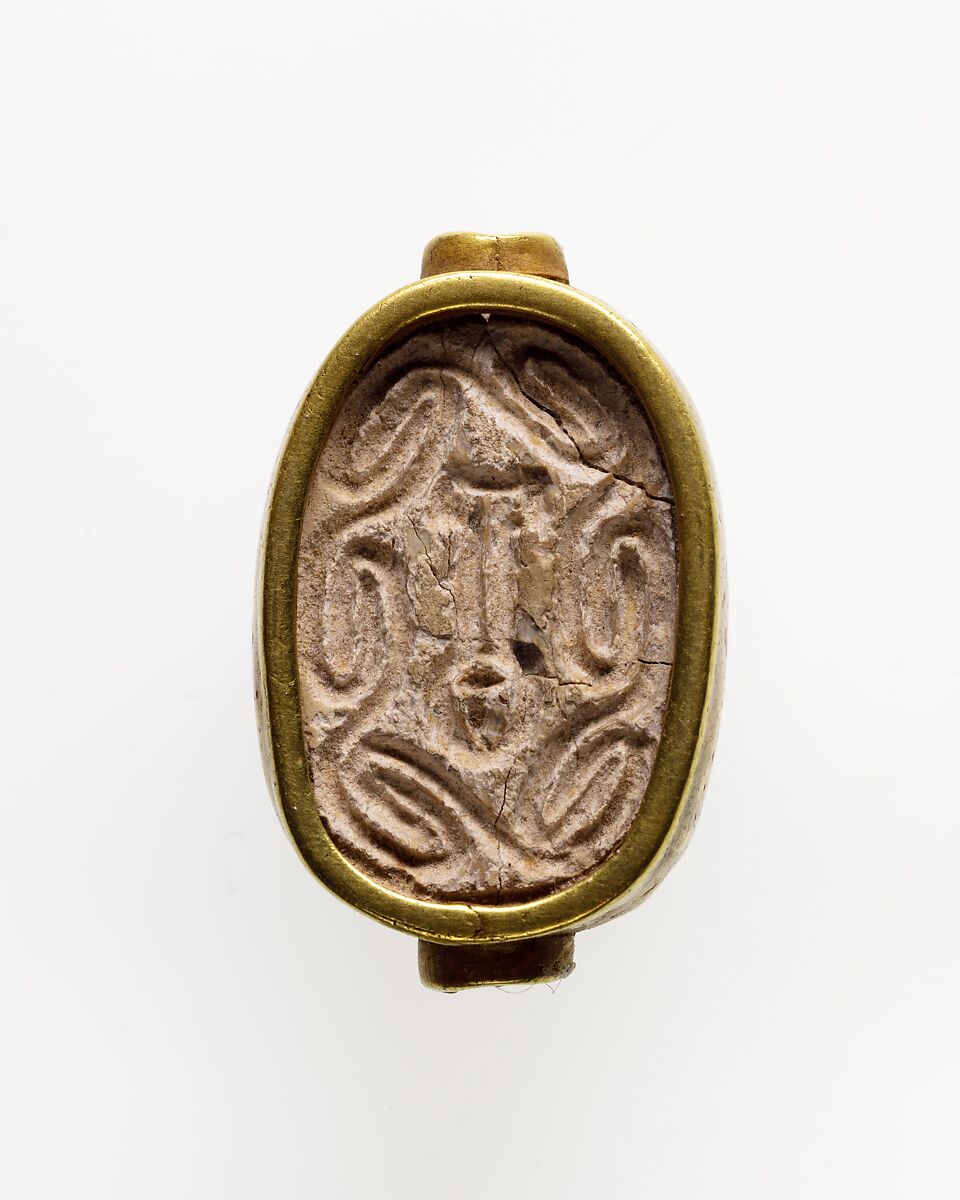 - Title: Mounted Scarab Incised with Nefer Sign in Scroll Border