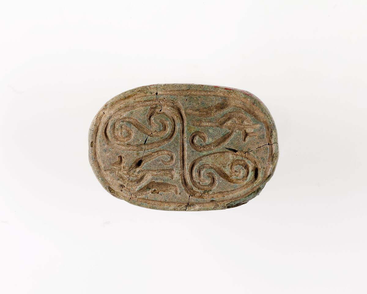 - Title:Scarab Decorated with Scrolls and Wedjat Signs
