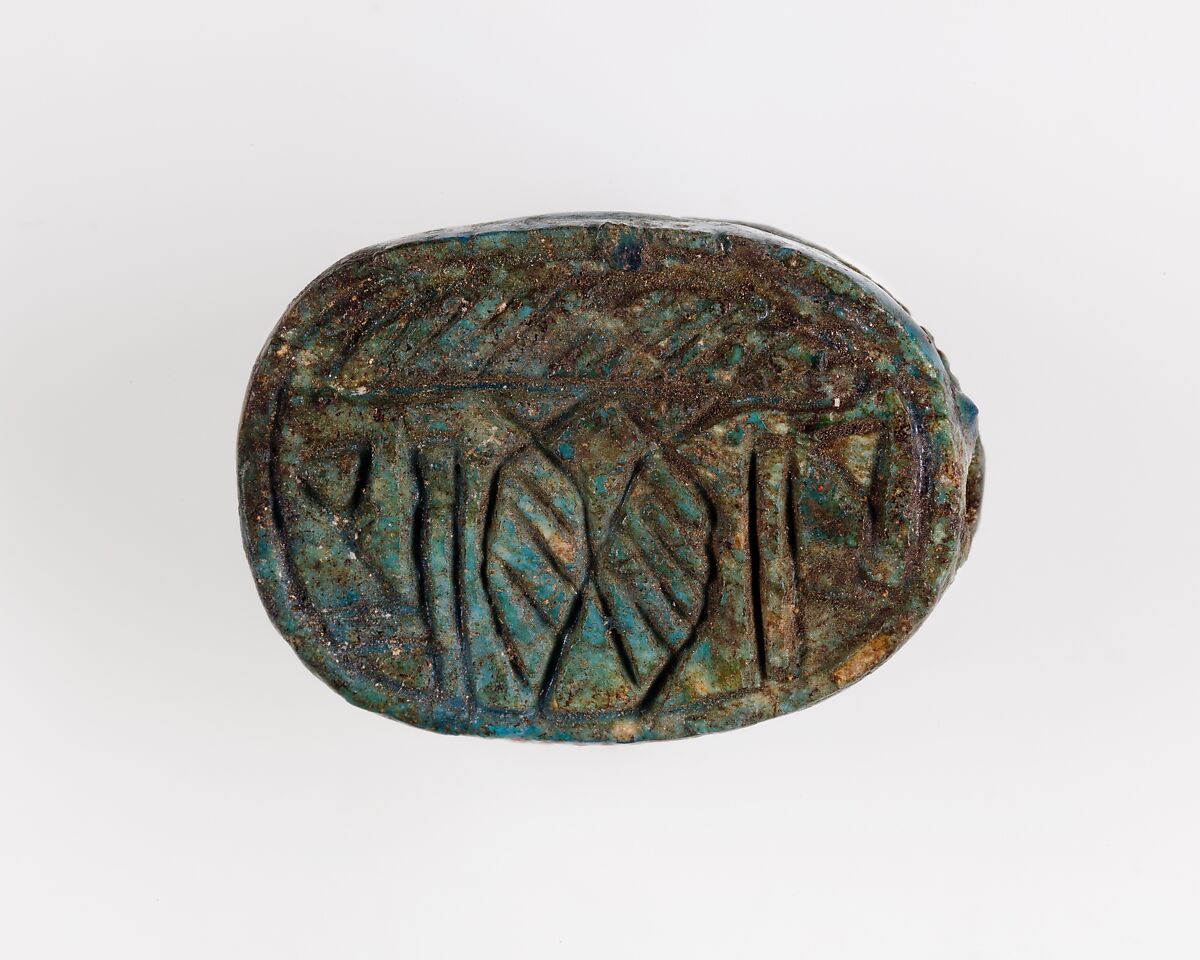 During the late Middle Kingdom (late Dynasty 12–mid Dynasty 13, ca. 1850–1640 B.C), decorations on scarabs often show symmetric designs and combinations of signs and symbols that are nicely composed.